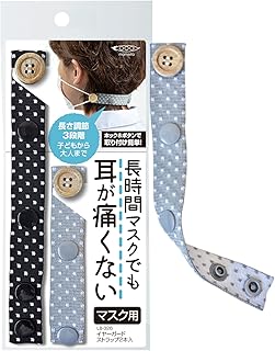 マメイタ マスクストラップ ブラック グレー 縦18cm×横2.2cm×厚み0.5cm マスク 首にかける イヤーガード 長さ調整可能 洗える 2本入 LB-326