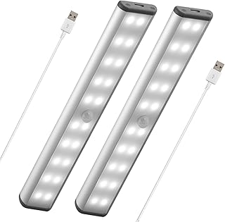 どこにでも貼り付けられるポータブルクローゼットライト ワイヤレス 20 LED キャビネット下照明 モーションセンサー 充電式バッテリー内蔵 磁石式 小さな安全 ナイトタップライト クローゼットキャビネット用 (シルバー)