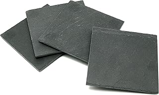 Creative Home 73472 天然スレートストーン4点セット 正方形コースター ストレートエッジ 4インチ x 4インチ ダークグレー