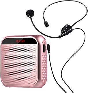 ポータブル拡声器 ハンズフリー ヘッドセット マイク付き 小型スピーカー 音楽再生 USB&microSD対応 日本語取扱書付き イベント•講演•説明会•集会などに最適! (ピンク)