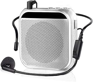 ポータブル拡声器 ハンズフリー 小型スピーカー 手ぶら 音楽再生 マイク付き USB&microSD対応 日本語取扱書と保証書付き ヘッドセット イベント·講演会·説明会·集会などに最適!! (ホワイト)