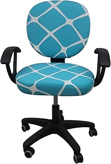 オフィスチェアカバー ソフト ストレッチ 幾何学模様 ジャカード オフィス コンピューター チェア スクエア ラウンド クッション シートカバー & バック スリップカバー (座面カバー + 背もたれカバー ピーコックブルー)