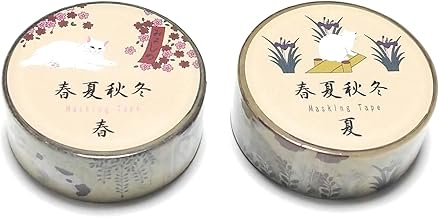 かわいい猫のマスキングテープ 花札柄 春夏秋冬【春・夏 セット】