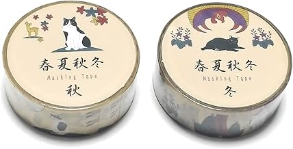 かわいい猫のマスキングテープ 花札柄 春夏秋冬【秋・冬 セット】