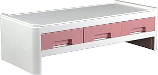 MRG パソコン台 引き出し パソコン モニター台 幅50 2段 モニタースタンド 机上台 シンプル おしゃれ 画面 台 PC デスク 学習机 机上 卓上 デスクトップ ノートパソコン キーボード マウス スマホ タブレット 収納 (ピンク)