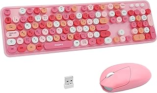 【クリスマスギフト】MOFii キーボード ワイヤレス マウスセット 2.4GHz 無線 静音 タイプライター風 円形 光学式マウス 日本語配列 ノートパソコン PC MAC Windows対応 電池式 ピンク