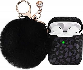Filoto Airpodsケース レディース レオパードAirpodsケース Apple AirPods2&1 充電ケース かわいいチータープリント シリコンソフトケース アクセサリー キーチェーン/ポンポン/ストラップ 女の子用 (ヒョウ柄)