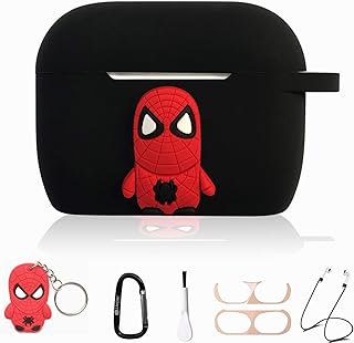 スパイダーマン シリコンカートゥーンレッドケース Apple Airpod Pro用 6イン1アクセサリーセット 保護カバー シリコンケース/キーチェーン/カラビナ/メタルダストステッカー/クリーニングブラシ/紛失防止ロープ 最高のギフト