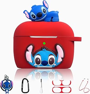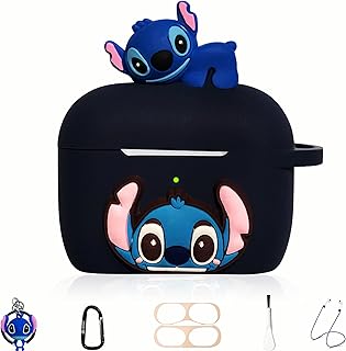 ステッチ シリコン キュート カートゥーン ケース Apple Airpod Pro用 衝撃吸収デザイン 7イン1 アクセサリーセット 保護カバー キーチェーン/メタルダストステッカー/紛失防止ロープ 最高のギフト
