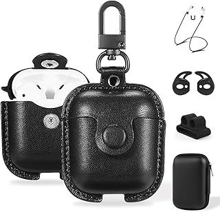 Maxjoy Airpods用ケース レザーAirpodsカバー 5イン1保護ケース キーチェーン/イヤーフック/Airpodsストラップ/ウォッチバンドホルダー/イヤーポッドケース Apple Airpods2 1充電ケース対応 ブラック