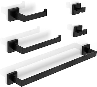 USHOWER バスルームハードウェアセット マットブラック 24インチ モダンスタイル タオルバーセット SUS304 ステンレススチール バスルームアクセサリー 5点