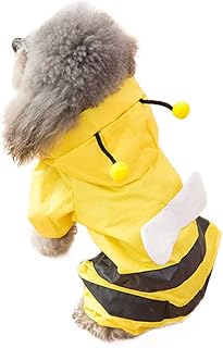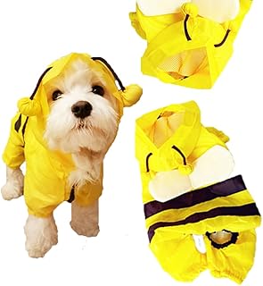 HaveGet 犬レインコート 小型犬 雨散歩 つなぎタイプ リード穴付き 帽子付き 犬用合羽 防水犬服 かわいい ワンチャン 雨の日犬お散歩用 レインポンチョ お出かけ 犬用雨具 濡れない(蜂3号)