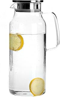 Cupwind 2000ml フタ付きガラスピッチャー、お湯/水用デカンタ、アイスティー、ジュース飲料ピッチャー(Feili-2000ML)